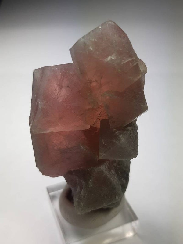 Here we have a very sharply floating cluster of translucent pink fluorite octahedrons with great faces from that famous 2019 (limited) find at the Huanggang mines!