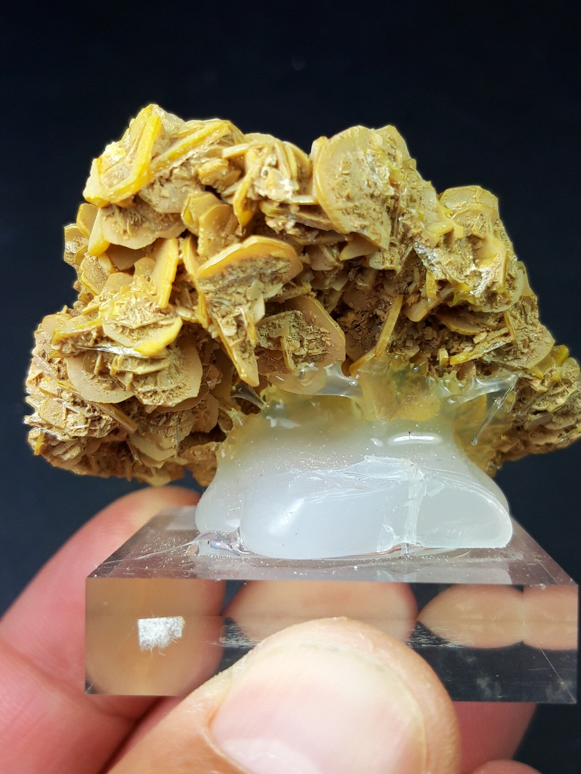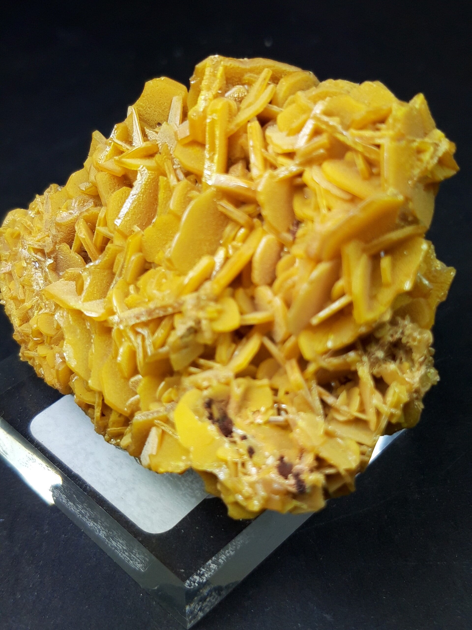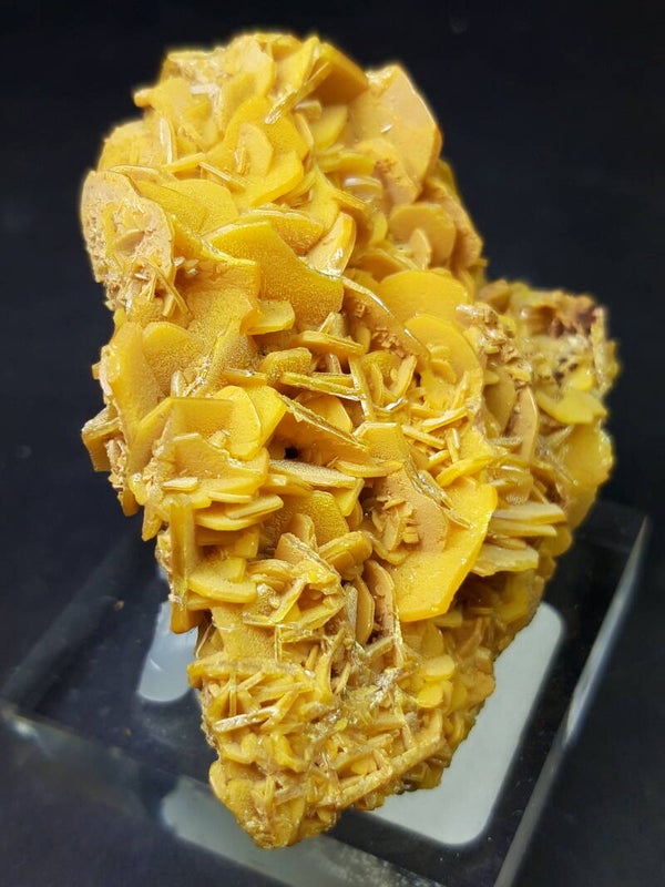 Nice double sided specimen of bi-colored wulfenite (BUTTERSCOTCH AND DARK YELLOW). From famous long closed mine Meszica.Very good for the species.