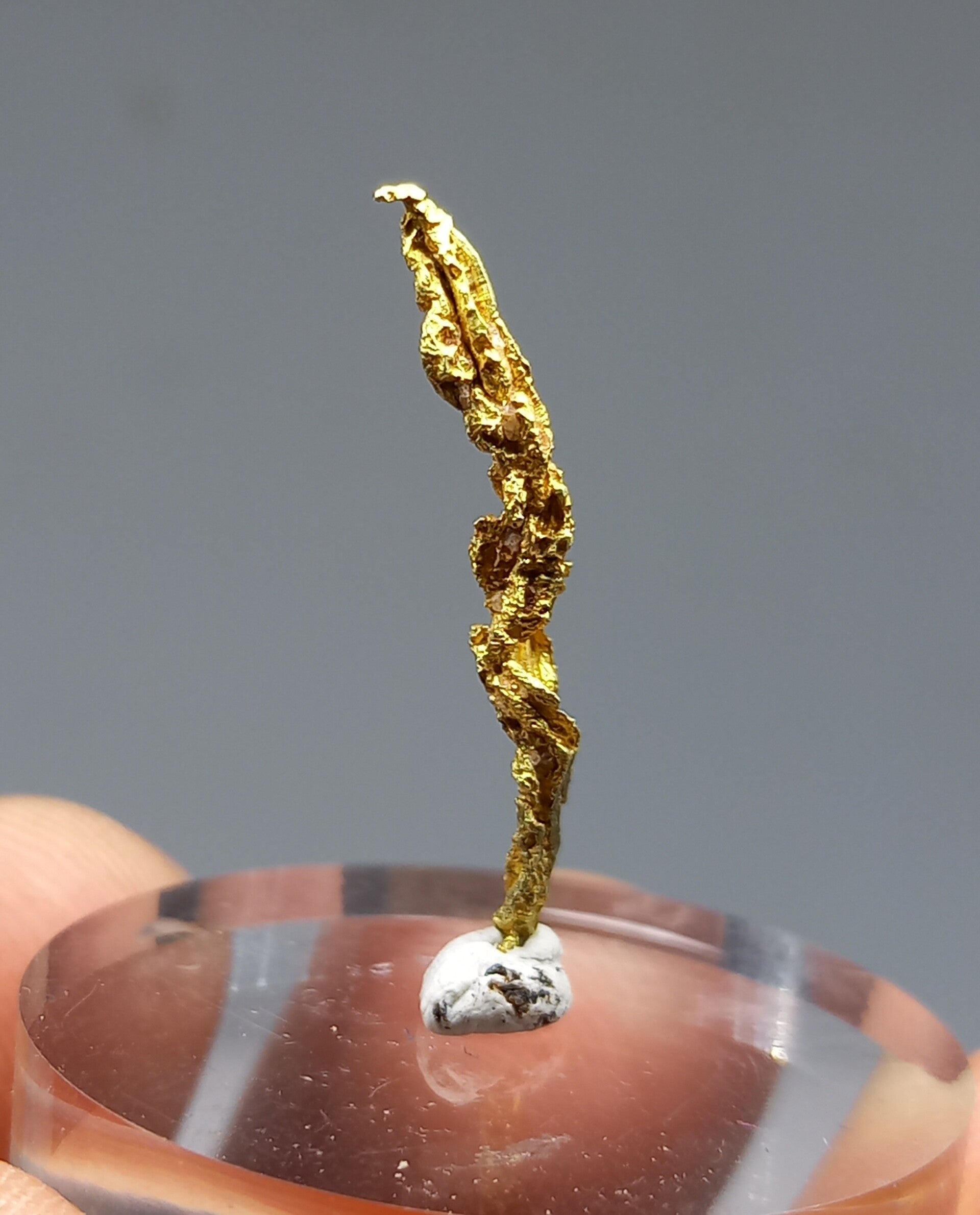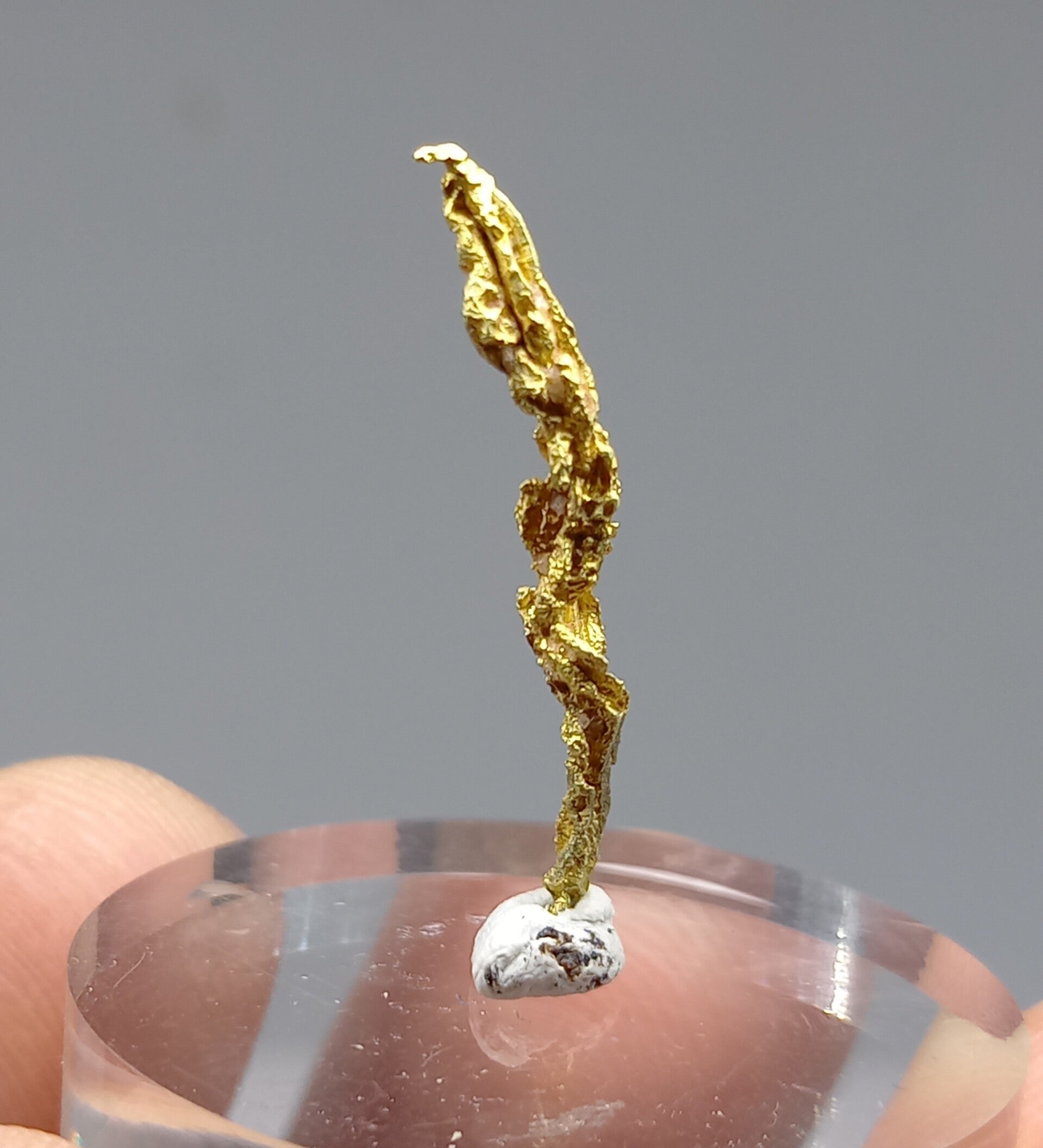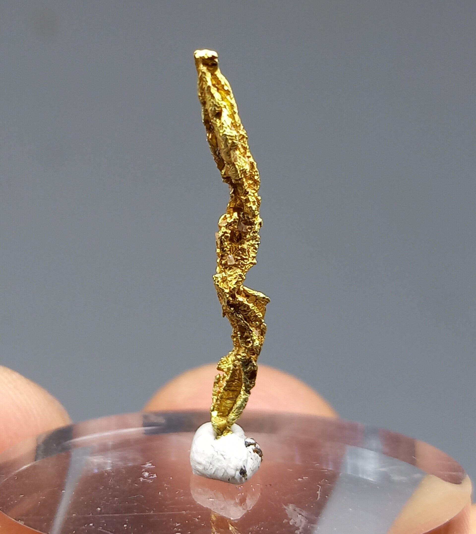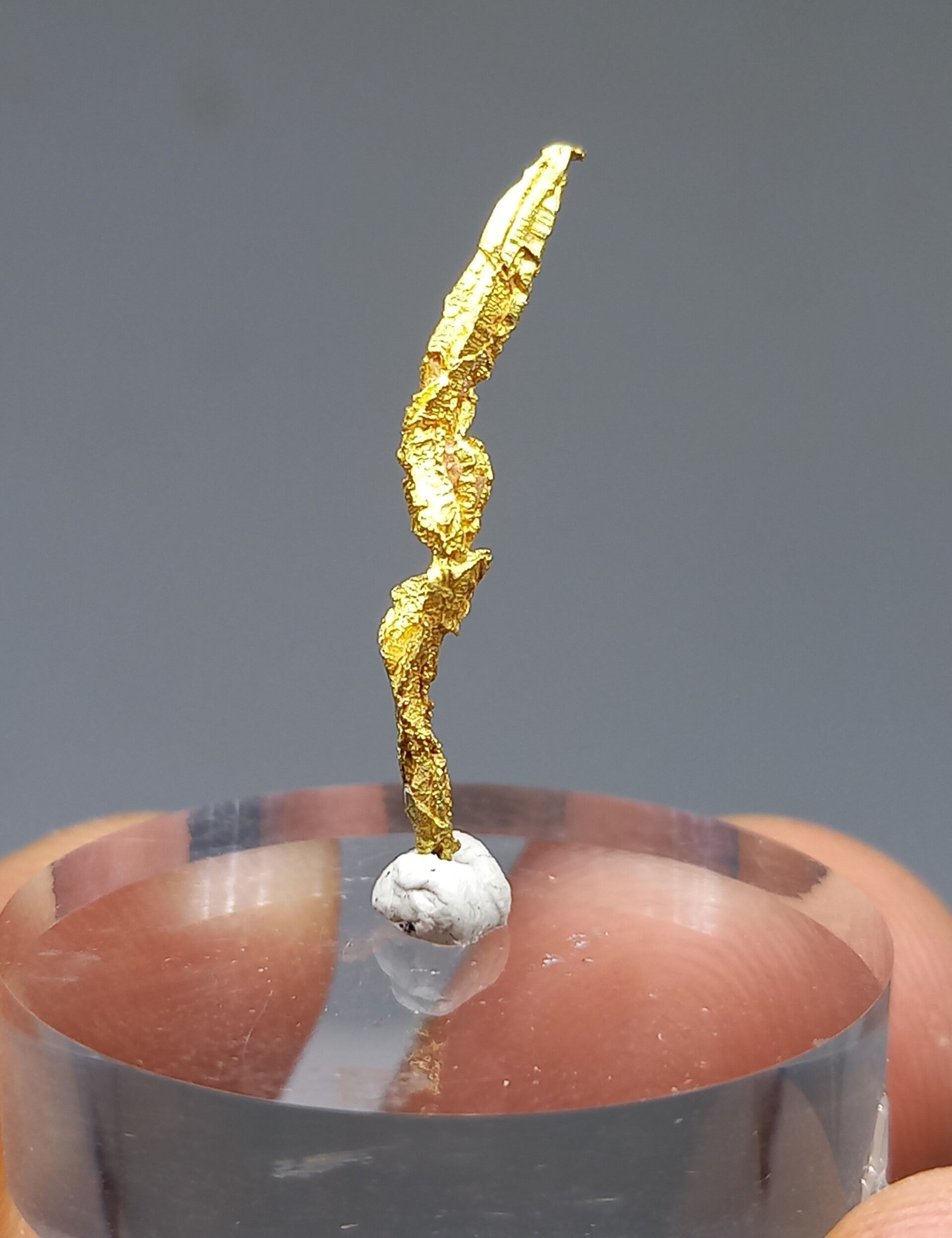 Well (spinel form shaped) crystallized curved gold crystal.