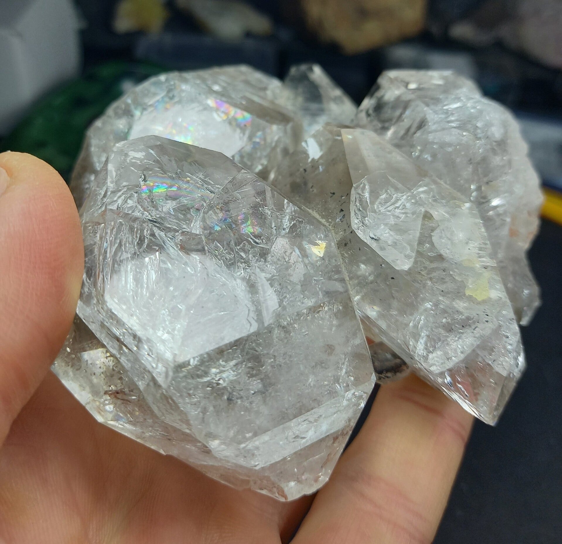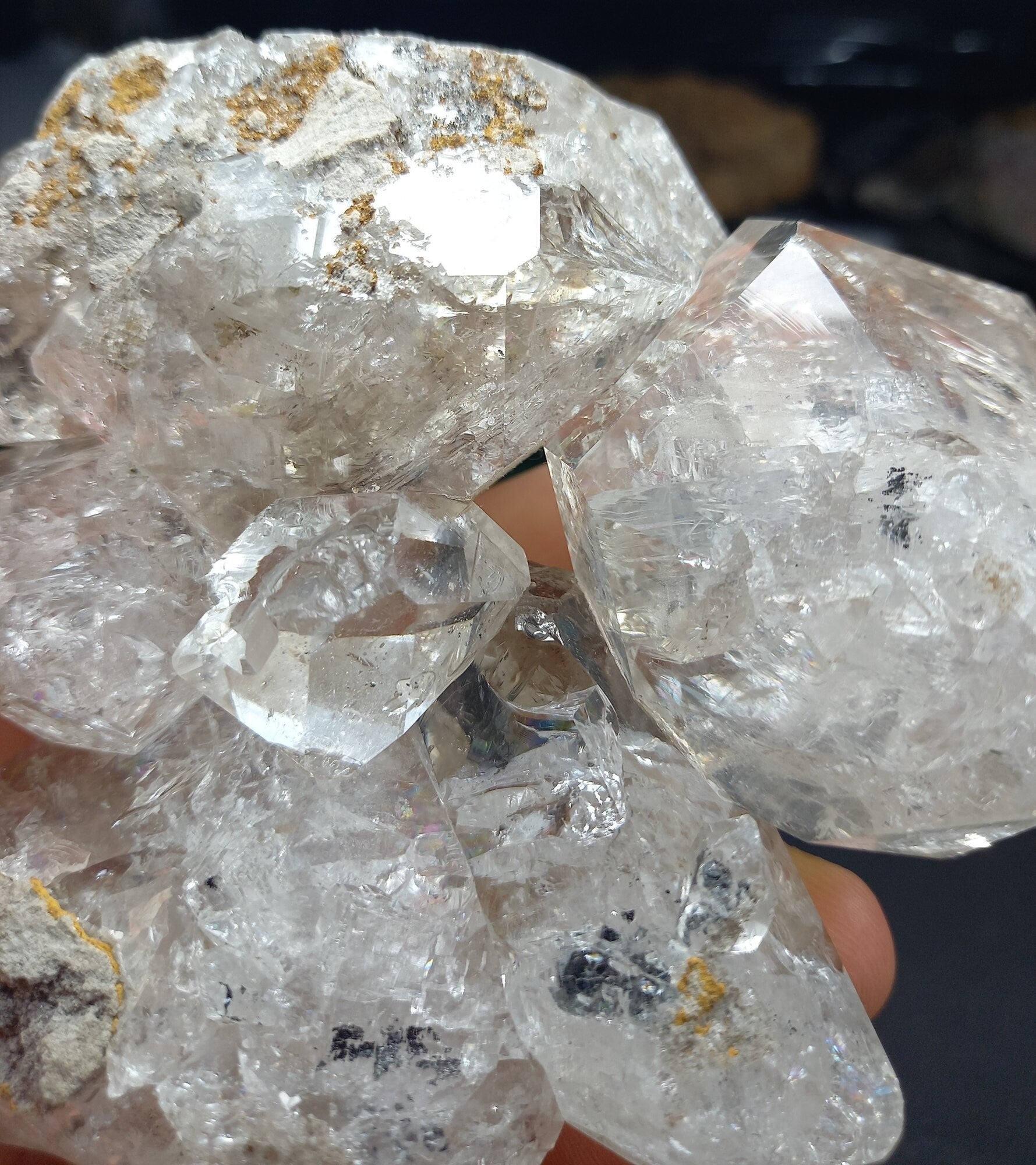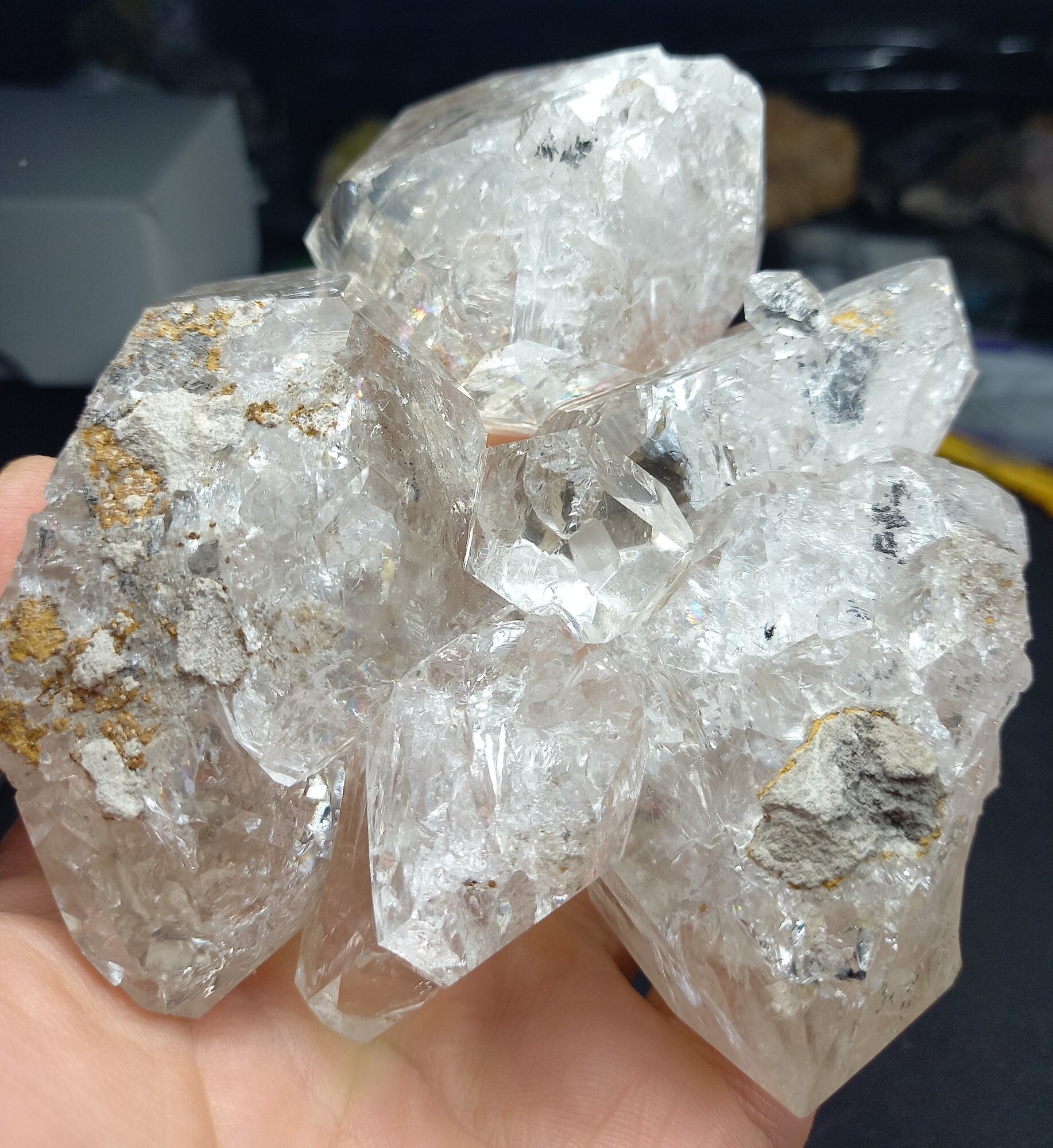 Eye-catching, beautiful water-clear and large "Herkimer Diamond" Quartz crystal group. Super transparant and lustrous! With inner rainbows. The back still has a little bit of matrix.
