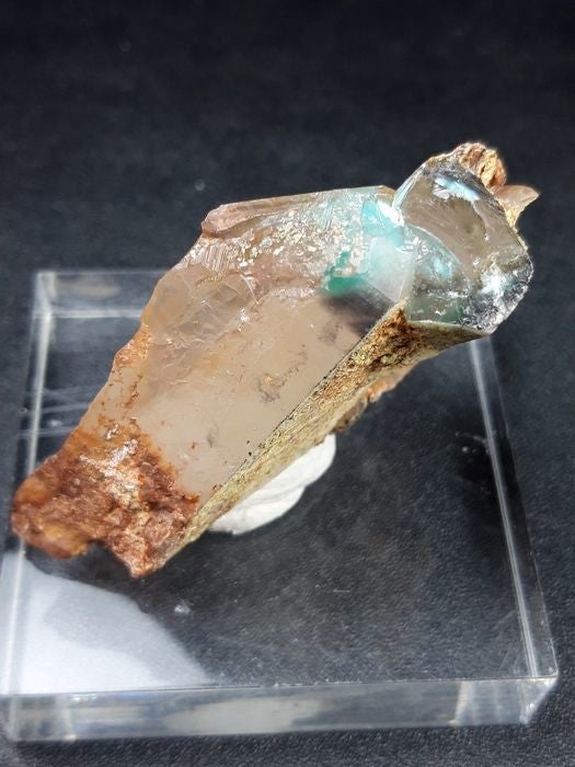 Ajoite is a rare copper-based mineral that appears in specimens almost exclusively as inclusions inside quartz crystals. Even rarer than a papagoite inclusion is the related copper species ajoite! Not of ten offered on the market and very sought after. Now the chance to obtain such a rare specimen.